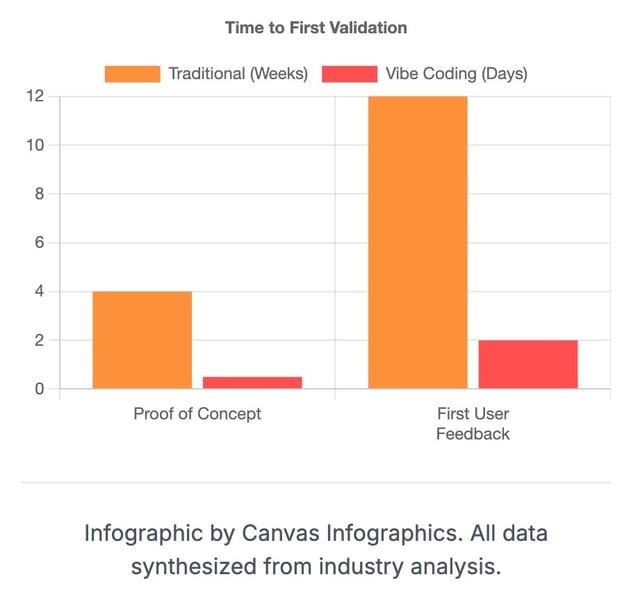 With Vibe Coding, a functional proof-of-concept can be generated in hours, allowing for immediate stakeholder validation and significantly shortening the path to a market-ready product.