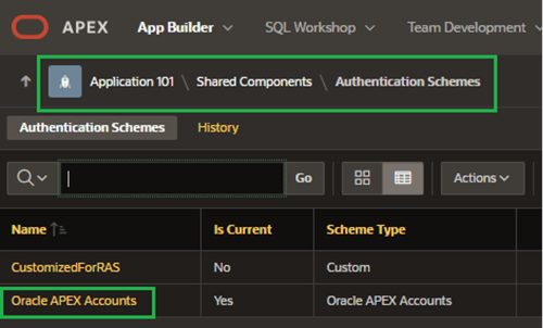Now I’ll get APEX ready to leverage RAS. My first stop: The authentication schemes under Shared Components (Figure 16) in my App Builder session.